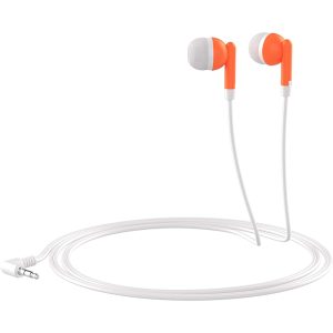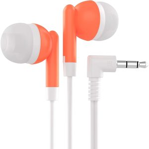 Stereo Earbud style headphones with a 48-inch length cable and a 3.5mm audio jack plug with an L shape connector.